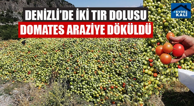 Denizli’ye bağlı Buldan’da iki tır dolusu domates kimliği henüz belirlenemeyen kişi tarafından boş araziye atıldı.