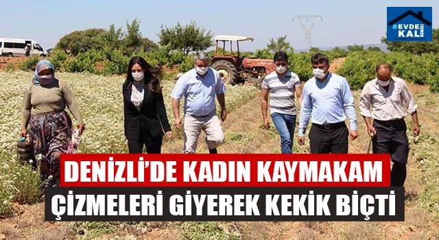 Denizli’nin Çal ilçesinin ilk kadın kaymakamı Selin Sarı, kekik tarlasında çizmeleri giyerek kekik biçti.