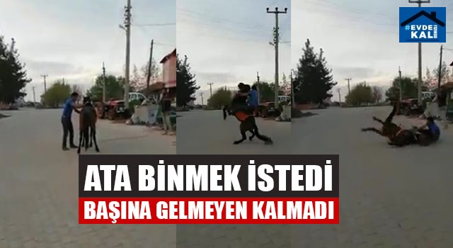 Denizli’de Mehmet Akan isimli vatandaş ata binmek isterken ürken hayvandan düşmesi arkadaşları tarafından görüntülendi. Vatandaşın binmek istediği esnada ürken at, şaha kalkarak üzerindeki kişiyi yere attı.