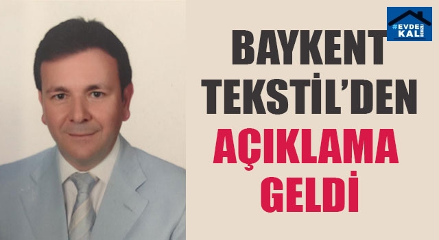 Baykent Tekstil Sanayi ve Ticaret A.Ş. Yönetim Kurulu Başkanı Mehmet Baykent, aşağıdaki açıklamayı yaptı: “13.07.2020 tarihinde sosyal medyada ve basında çıkan haberler bizi üzmüştür. Ana şirket olan BAYKENT TEKSTİL SANAYİ VE TİCARET A.Ş. firmamız, heryıl olduğu gibi %20 oranla yurtiçi ve yurtdışı satışları artarak devam etmektedir.