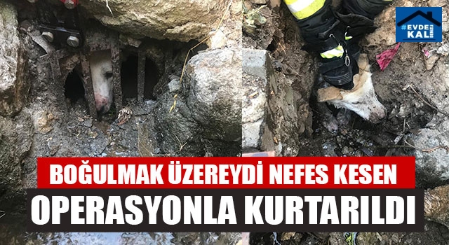 Denizli Büyükşehir Belediyesi İtfaiye Dairesi Başkanlığı ekipleri sulama kanalında mahsur kalan ve boğulma tehlikesi geçiren köpeği nefes kesen bir operasyonla kurtardı.