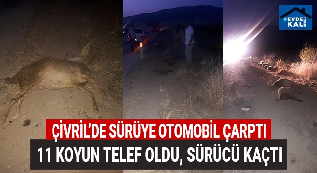 Denizli’nin Çivril ilçesine bağlı Kıralan Mahallesi’nde Rıfat E’ye ait koyun sürüsüne otomobil çarptı. Sabaha yakın saatlerde meydana gelen olayda 9 koyun telef olurken, 2 koyun ise sahibi tarafından ölmeden kesildi. Koyunlara çarparak kaçan otomobil sürücüsü ise aranıyor.