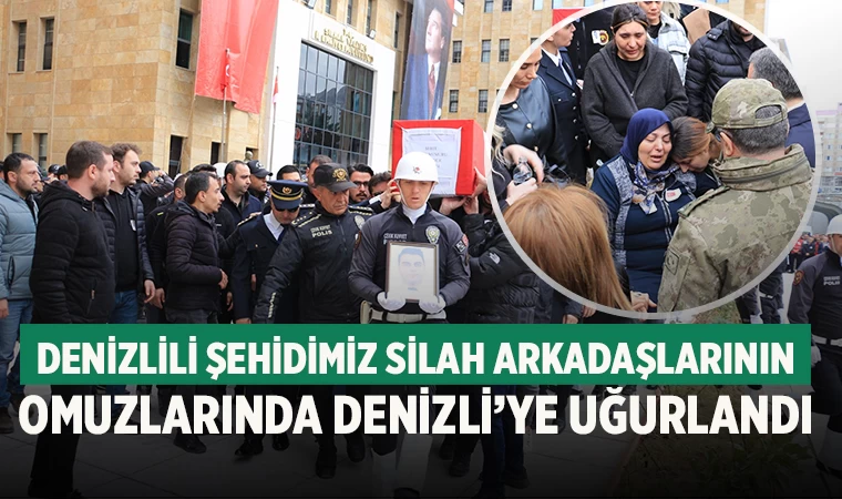 Şırnak'ta, trafik kazasında şehit olan Denizlili polis memuru Fırat Der, düzenlenen törenle polis arkadaşlarının omuzlarında memleketi Denizli'ye uğurlandı.