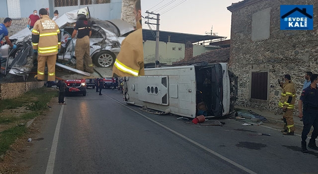Kaza, Kahrat Mahallesi'nde meydana geldi. İddiaya göre, Ödemiş istikametinden Gökcen istikametine doğru seyir halinde olan ve Suriyeli patates işçilerini taşıyan 47 AAT 257 plakalı sürücüsü belirlenemeyen minibüs, kavşaktan kontrolsüz çıkan 35 SL 538 plakalı Yasin Yarış’ın kullandığı otomobile çarptı. Çarpmanın şiddeti ile minibüs devrilirken otomobil ise hurda yığınına döndü. Kazanın ardından olay yerine Ödemiş ve Tire'den çok sayıda ambulans sevk edildi. Minibüste bulunan tarım işçilerinden 5 kişi yaralanırken, otomobil sürücüsü Yasin Yarış olay yerinde hayatını kaybetti. Otomobilde bulunan yolcu Mehmet Bulut yaralı olarak Ödemiş Devlet Hastanesinde tedavi altına alındı. Servis minibüsünde bulunan ve Suriyeli oldukları öğrenilen 5 yaralı, Ödemiş ve Tire Devlet Hastanesinde tedavi altına alındılar. Kazanın ardından minibüs şoförünün kayıplara karıştığı iddia edilirken jandarma kaza ile ilgili soruşturma başlattı.