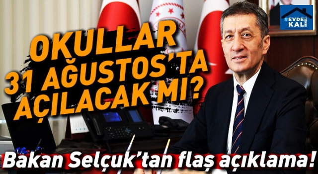 Milli Eğitim Bakanı Ziya Selçuk yaptığı açıklamada, "Okulların açılacağı hafta ne olacağını bugünden bilemeyiz. Velilerim şundan emin olsun, öğretmenlerimizin ve çocuklarımızın güvenliği bizim için her şeyden önce. Biz 31 Ağustos'ta açılacak mı derken, bunun olmasını temenni ediyoruz." dedi.