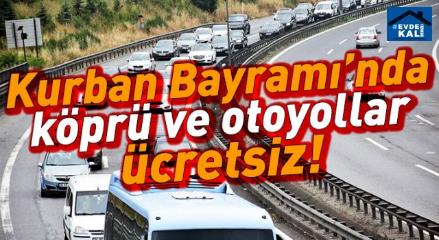 Kurban Bayramı nedeniyle, 30 Temmuz Perşembe günü gece yarısından, 4 Ağustos Salı günü saat 07.00'ye kadar Karayolları Genel Müdürlüğüne bağlı otoyollar, 15 Temmuz Şehitler Köprüsü ve Fatih Sultan Mehmet Köprüsü geçişleri ücretsiz olacak