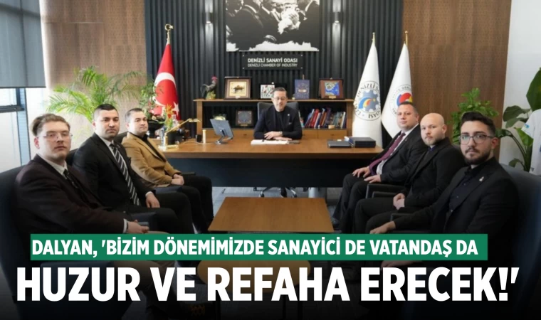 Başkan Adayı Nuri Dalyan "Öncelikle Misafirperverliklerinden dolayı Sanayi Odası Başkanımız Selim Kasapoğlu'na teşekkür ediyoruz. Kendileriyle Denizli'miz üzerine, Denizli Sanayisi üzerine görüştük bilgi alışverişinde bulunduk. Sanayi Odasının faaliyetleri konusunda bilgi aldık. Denizli ve Denizli Sanayisi için projelerimizi anlattık. İnşallah bizim belediyeciliğimiz döneminde sanayicilerimiz de vatandaşımız da huzura ve refaha erecek" dedi.