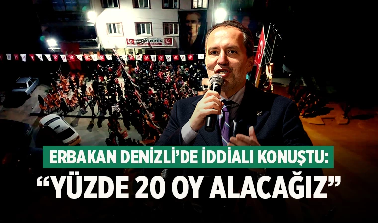 Yeniden Refah Partisi Genel Başkanı Fatih Erbakan, Denizli'de konuştu. Erbakan, partisinin yapılan anketlerde çıkan yüzde 6-7'lik sonuçları üçe katlayarak yüzde 20 oy alacaklarına inandığını iddia etti. Erbakan, "Ahlaklı belediyecilikle, 94 ruhunu yeniden hayata geçireceğiz" sözleriyle partisinin hedeflerini belirtti.